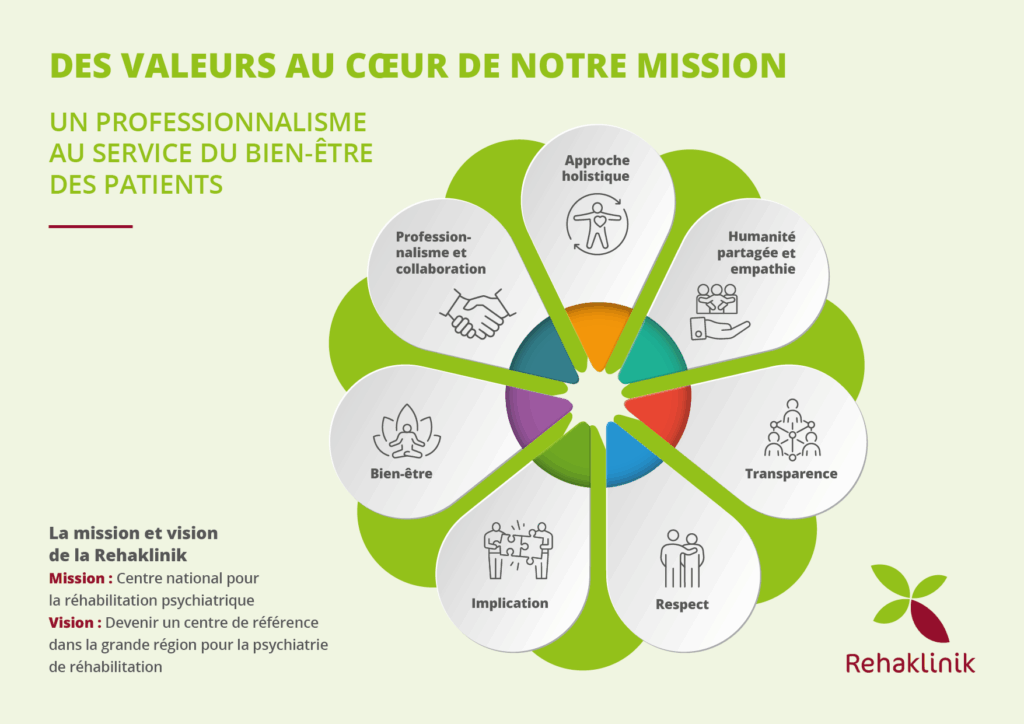 À la Rehaklinik, nos valeurs guident chacune de nos actions :